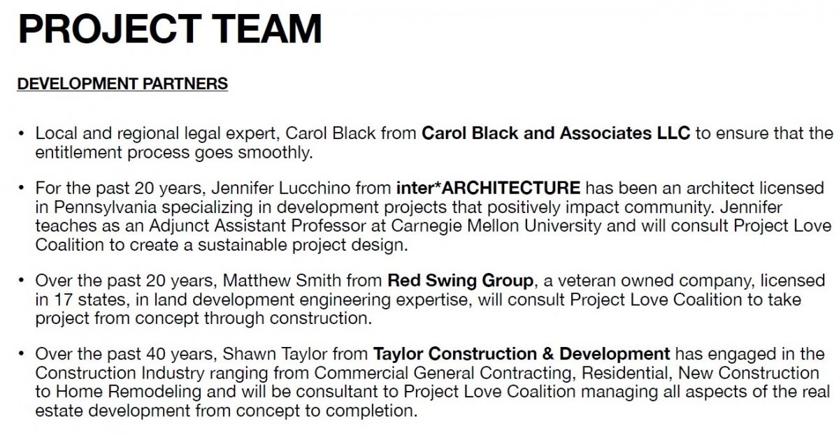 As of March 2024, there have been no formal meetings between Hill CDC and Project Love Coalition. At a May 2024 Development Activities Meeting, PLC President Kent Bey shared frustrations with the City and Hill CDC about the status of his project. At that meeting he was encouraged by all who attended, including Hill CDC, to schedule meetings to continue dialogue about moving the project forward.