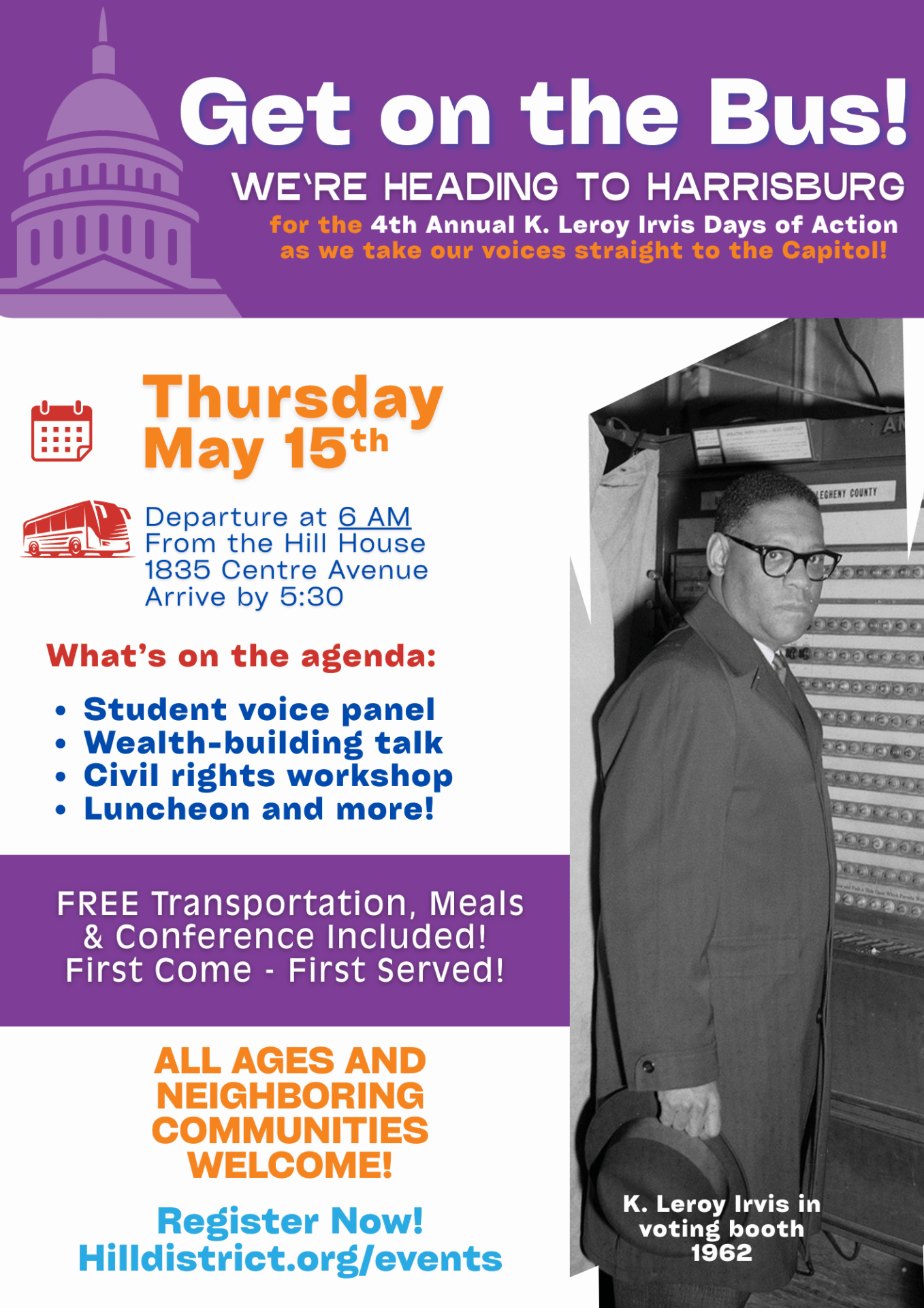 Bus departs at 6 AM from the Hill House (1835 Centre Ave)