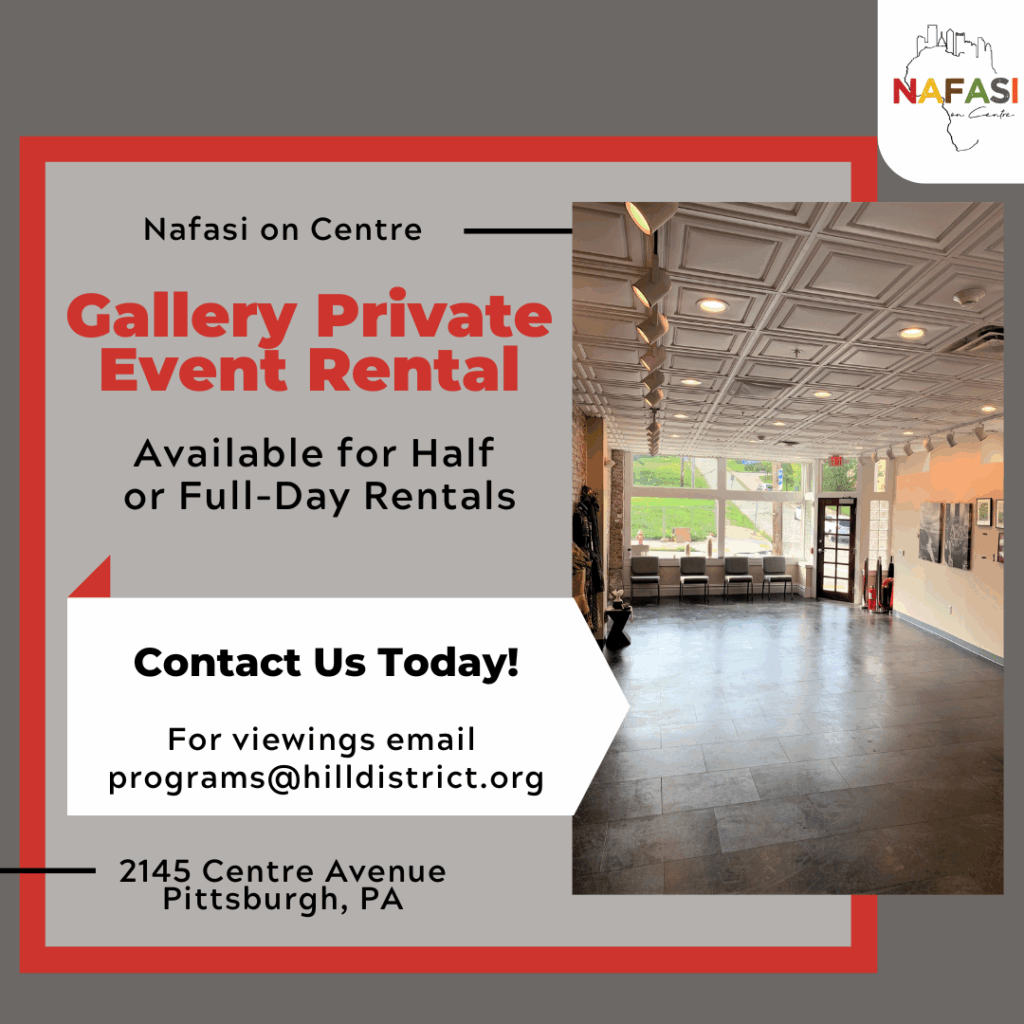 Nafasi, which means space and opportunity in Swahili, is the first substantial project to emerge from the Hill District Arts Plan and is a cultural strategy to meet the 5 goals of the Greater Hill District’s Master Plan which aims to: (1) Build Upon the African American Cultural Legacy, (2) Family Friendly Housing Development Without Displacement, (3) Economic Empowerment & Community Development, (4) Make the Hill a Green and Well-Designed Community, and (5) Mobility, Transportation, and Parking.
